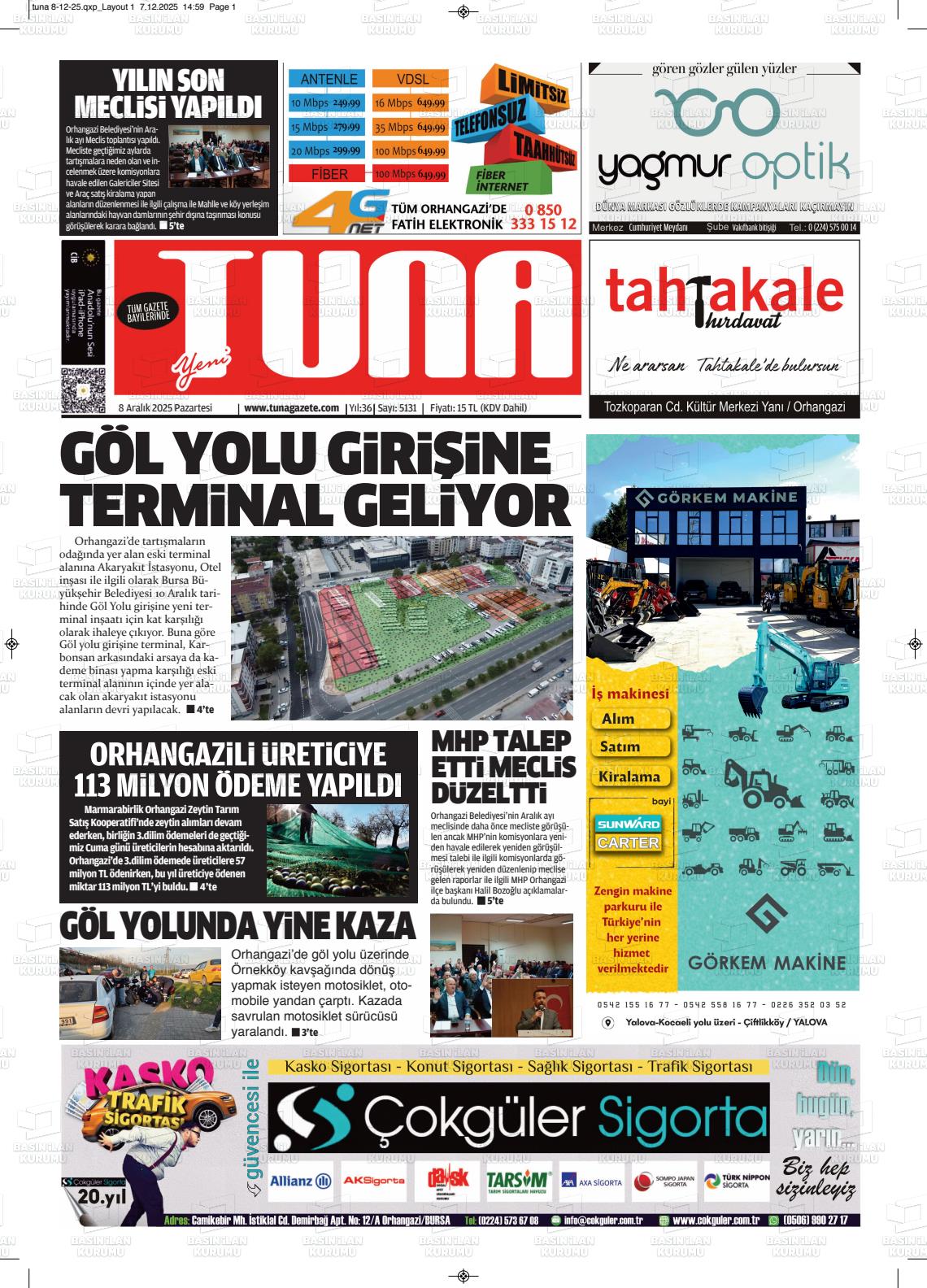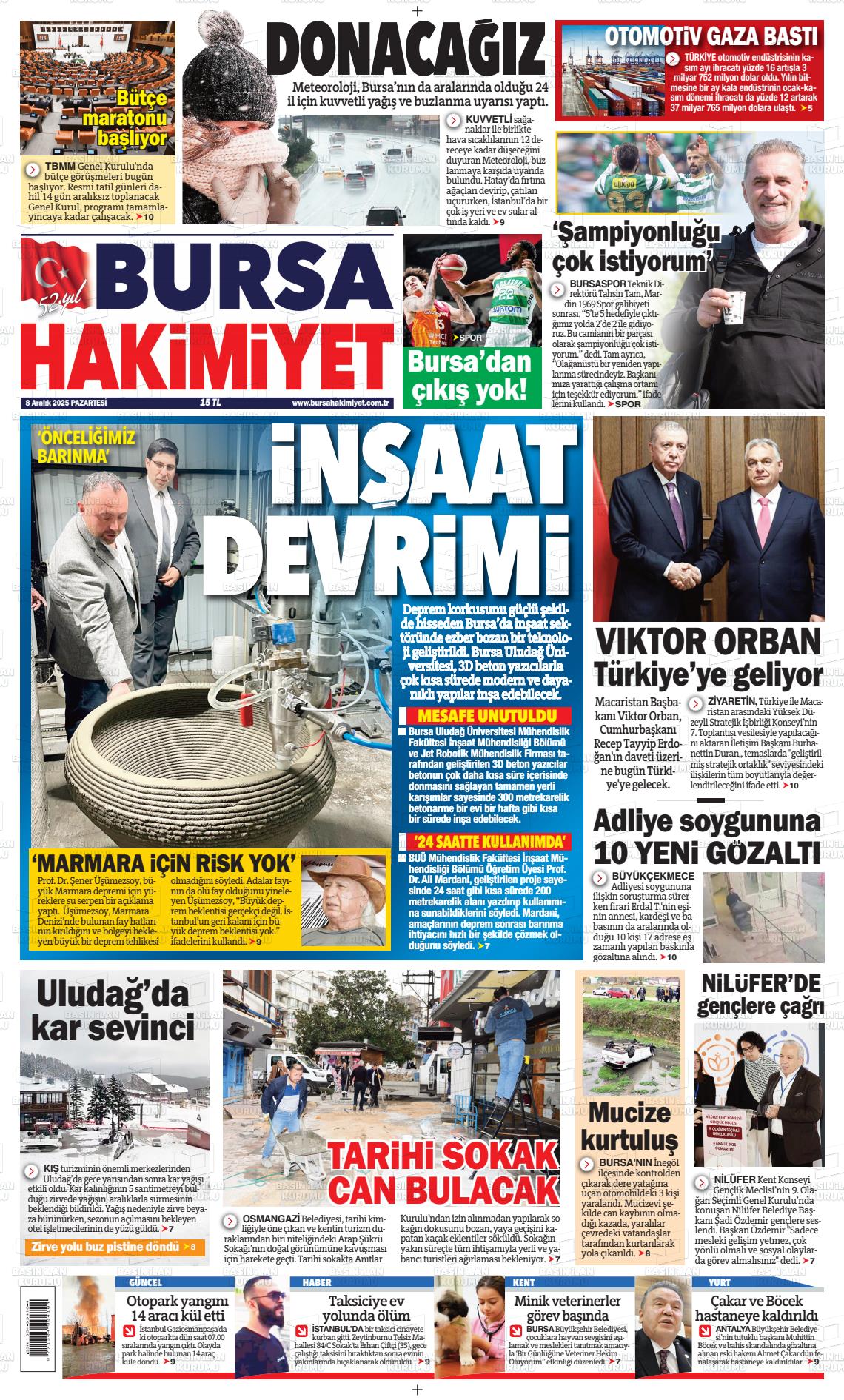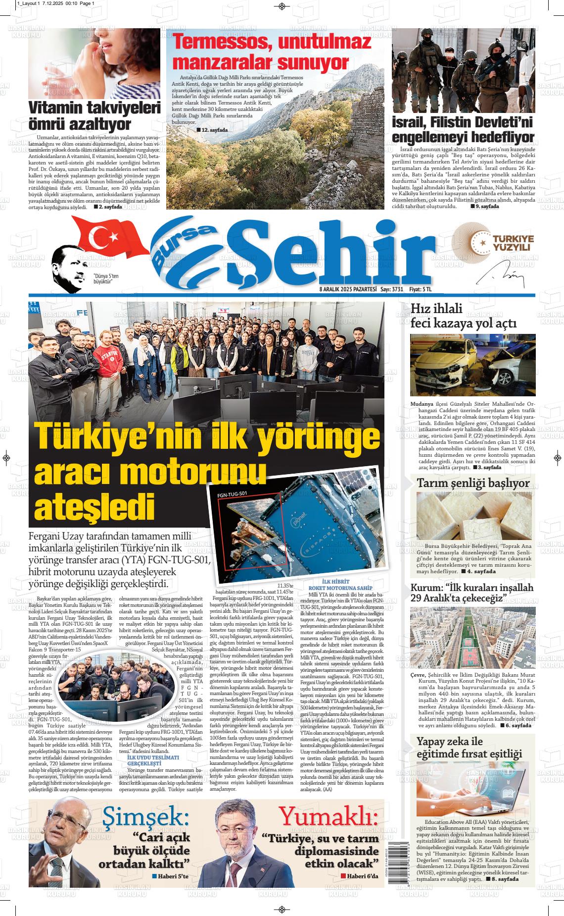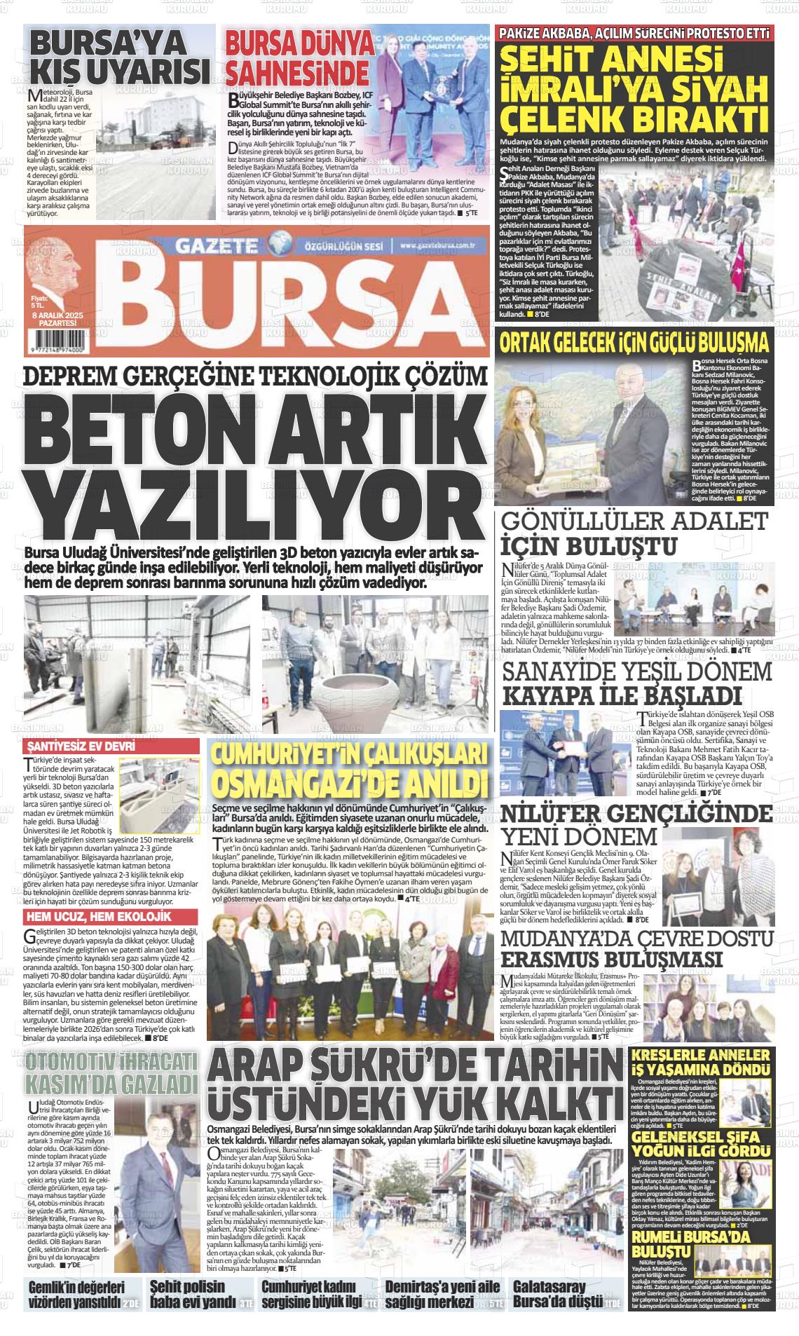 Bursa Yerel Gazeteleri 02 Haziran 2025, Pazartesi Günü Manşeti